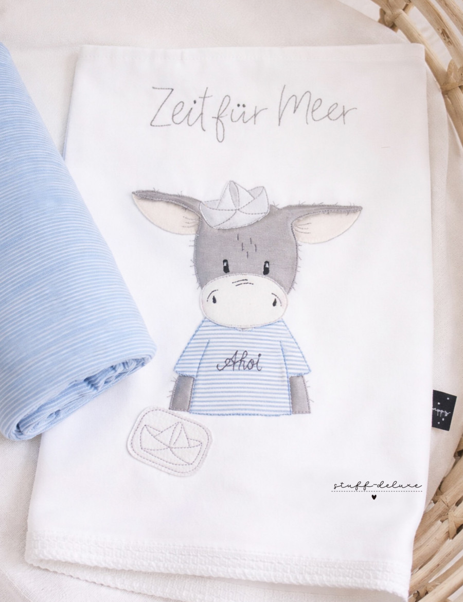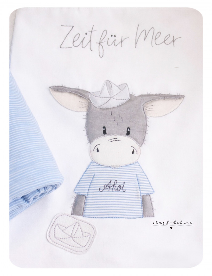 Donkey, Eselchen, maritim, Schiffchen, Boot, Meer, stuffdeluxe, stickdatei, sticken Embroidery, Stickpatch