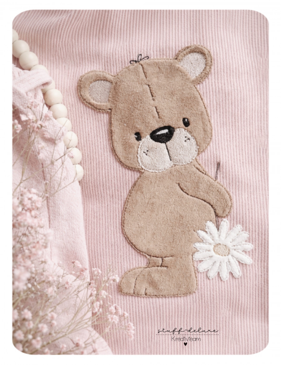stuffdeluxe, Stickdatei, sticken, Embroidery, Bärchen, Bärli, Bruno, Blume, Sommer