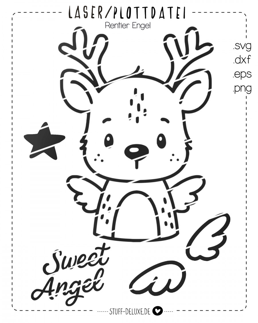 Engel, Angel, Flügel, Rentier, Elch, Weihnachten, Stern, Stars, stuffdeluxe, Digi, Stempel, Plotterdatei, plotten, plott,