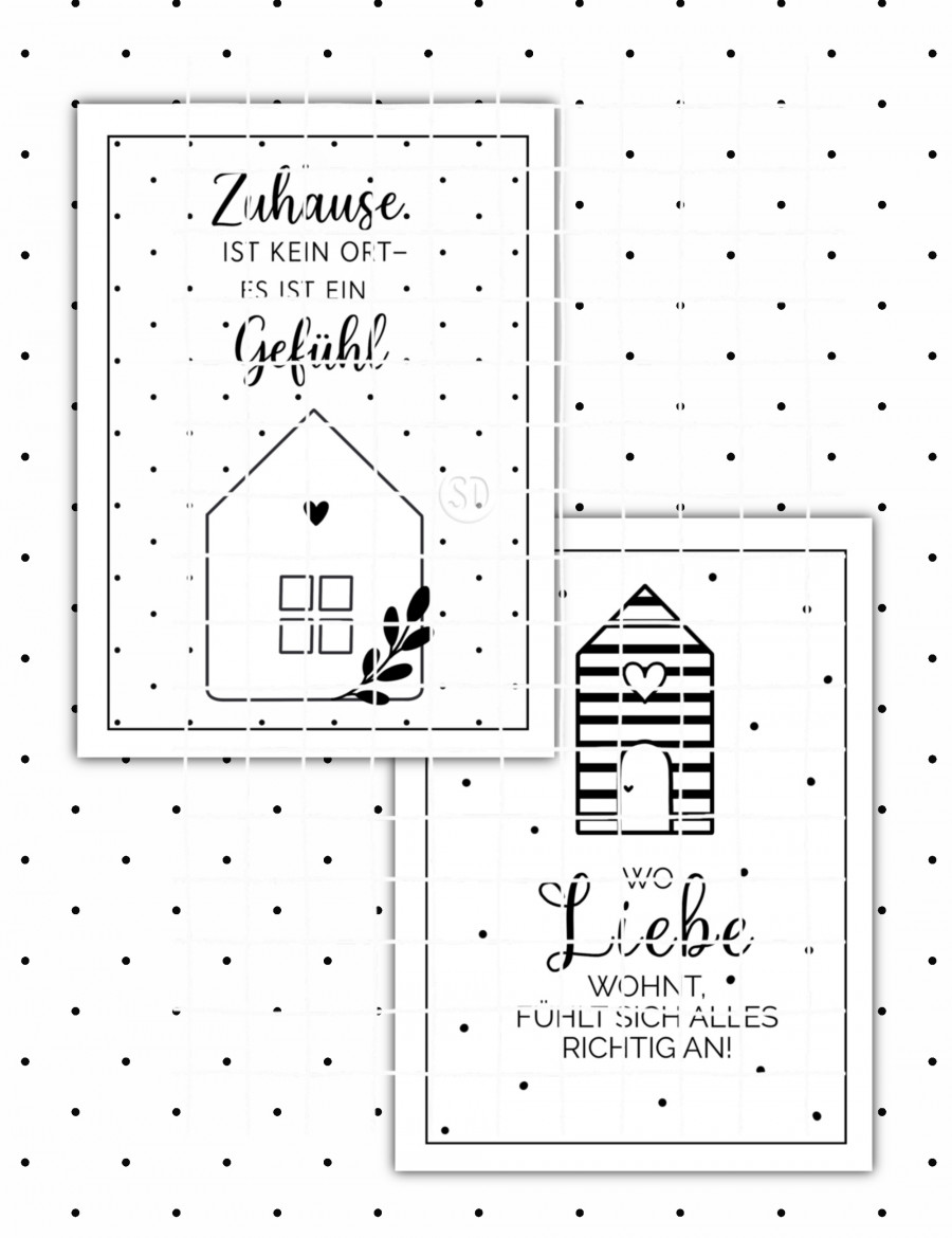 DIGITAL PRINT PDF 2er Postkarten schwarz weiß ZUHAUSE