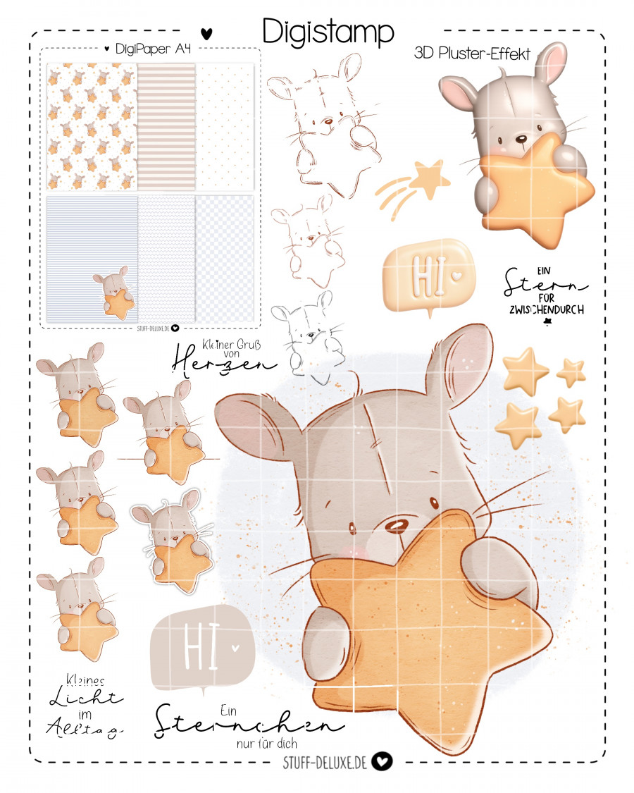 Hase, Hasi, Stern, Sternenhasi, Digis, stuffdeluxe, Digi, Stempel, Laserdatei, Lasercut, Notizen, karte, drucken, Drucker,