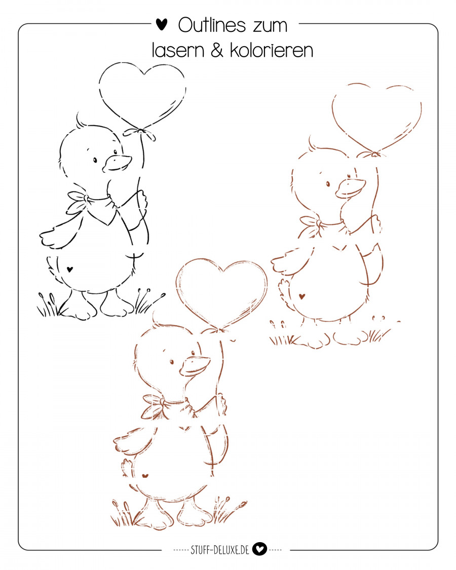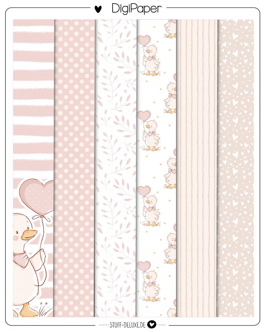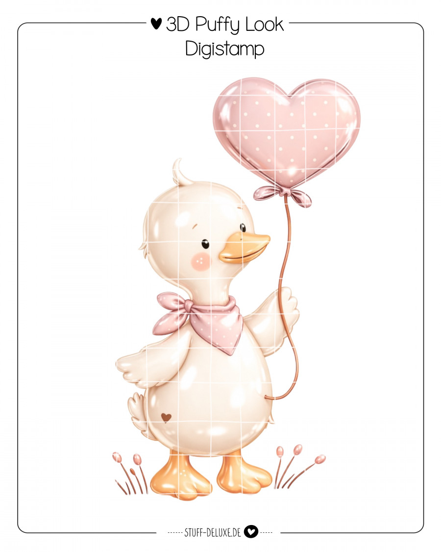 Digistamp + Digipaper Set Entchen Greta mit Herzballon