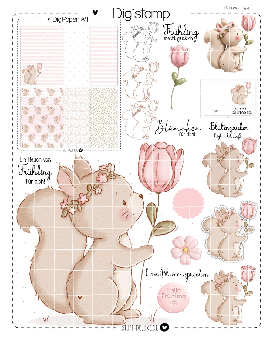 Digistamp + Digipaper Set Frühlingshörnchen