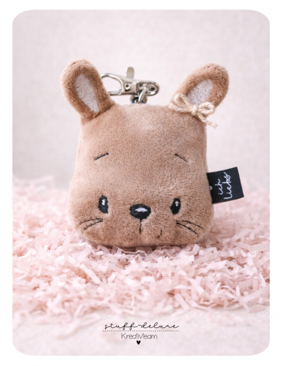 Der Kopf wird komplett im Stickrahmen gestickt. Lediglich die Wendeöffnung wird mit ein paar Stichen mit der Hand oder Nähmaschine geschlossen.